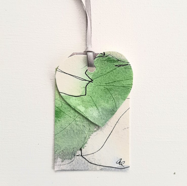 Each tag measures 2 x 3 inches. The heart is 2 x 2 inches, and is initialled by me, the artist.