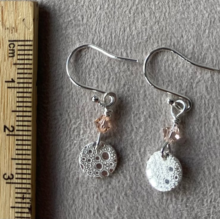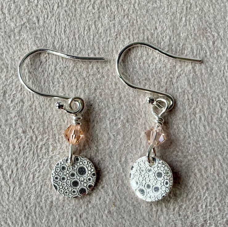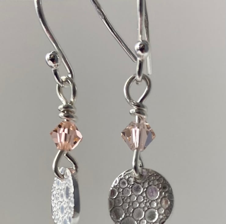 Pure silver earrings with a lovely bubble pattern. Pale pink Swarovski crystals. On sterling silver ear wires.