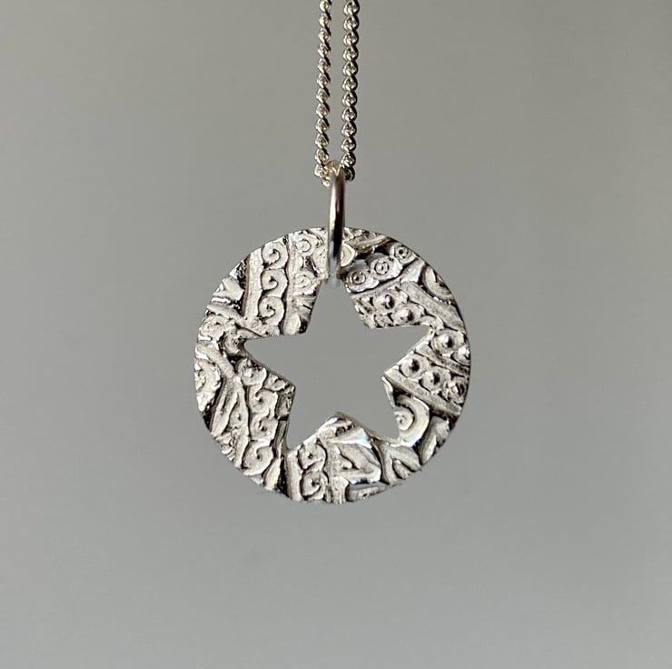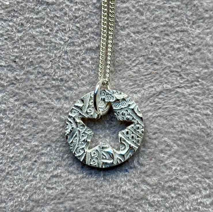 Pretty, circular necklace with lovely texture and cut out star.
