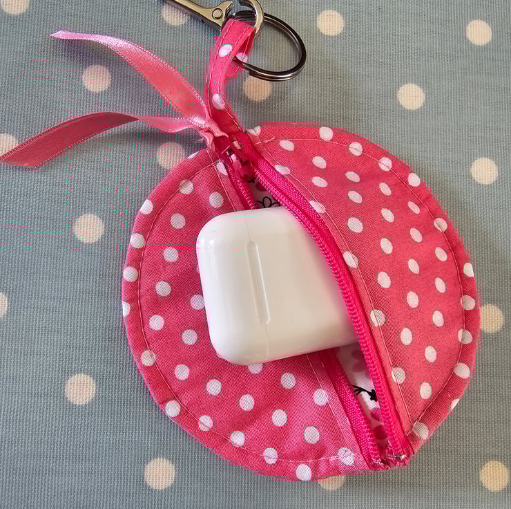 Great little handmade holders / purses for your ear buds, accessories, money etc. These can clip onto or into your bag so they don't get lost, stolen and makes them easier to locate.