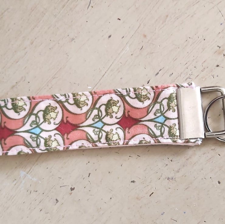 Made in cotton with a strong silver coloures, top clip which has the ring for attaching your keys.