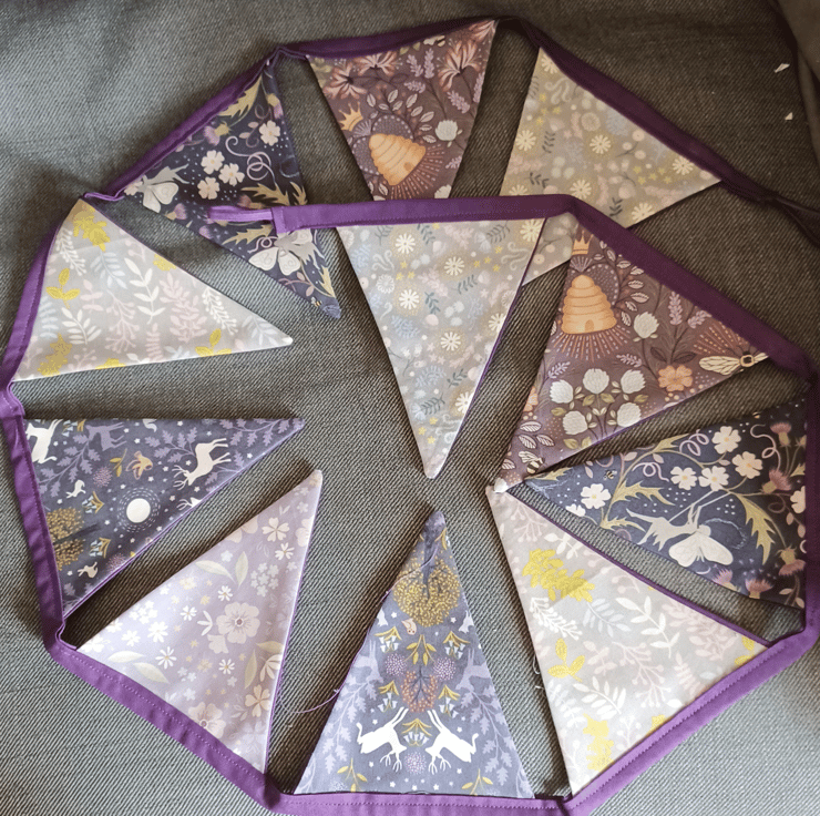 Our Midsummer's Night bunting is inspired by Jo's favourite play, 'A Midsummer Night's Dream': choose from the dark blue of the night time forest or the deep purple of fairyland revels!