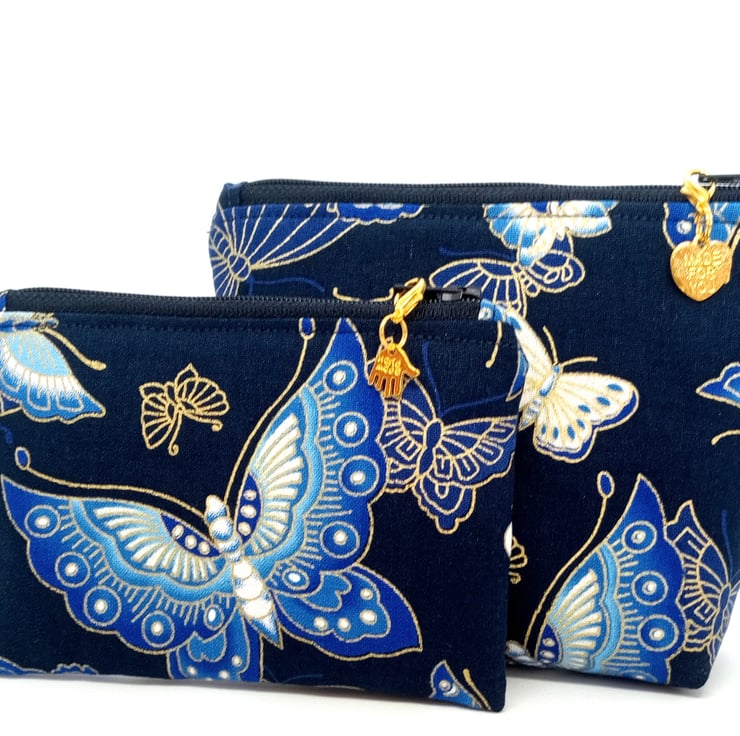 The Coin Purse is 13cm x 10cm and the Makeup Bag is 15cm x 12cm x 5cm. Both ideal for your handbag.