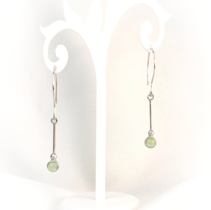 Silver, drop earrings with 5mm peridots.