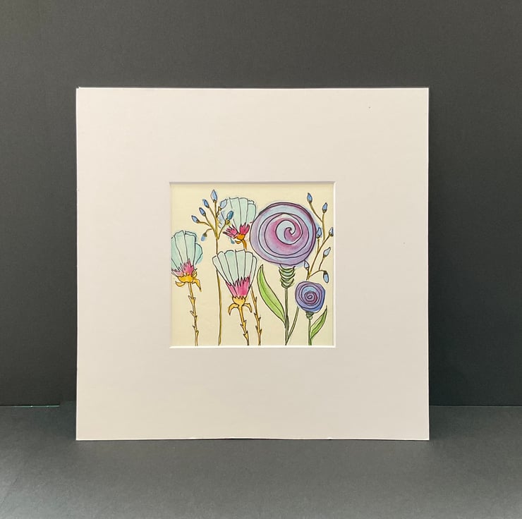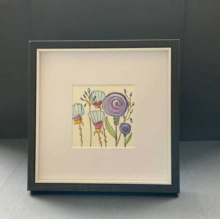 The picture is presented in a white card mount ,and the painting itself measures 10 x 10cms and the square black frame is 22.5 x 22.5cms .The frame can be hung or free standing ,whichever you choose The painting would make a lovely gift for a friend ,relative or maybe someone who enjoys gardening