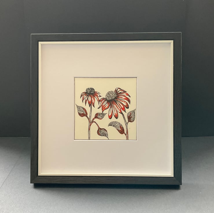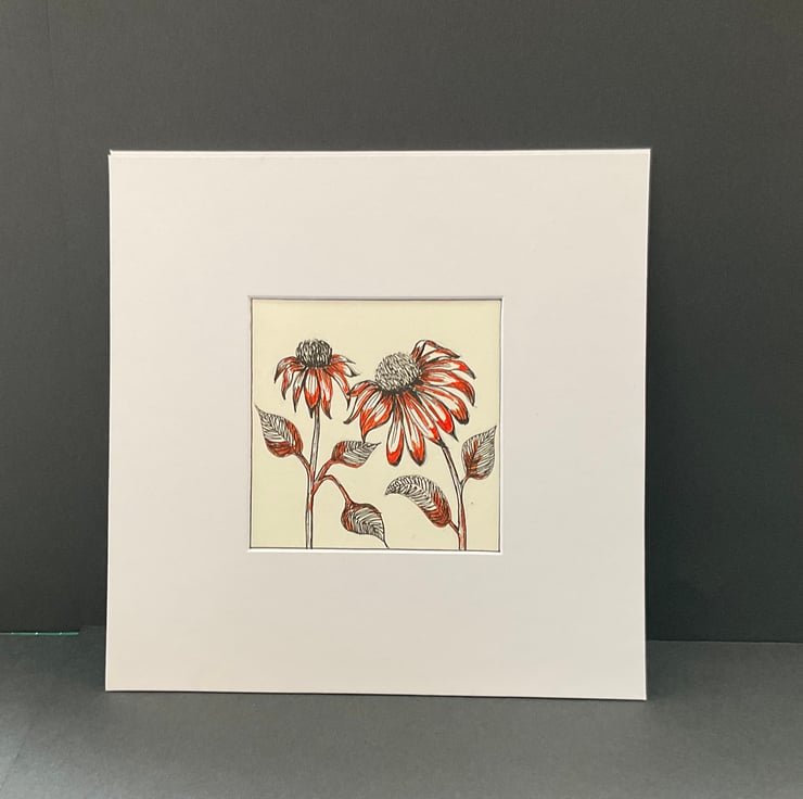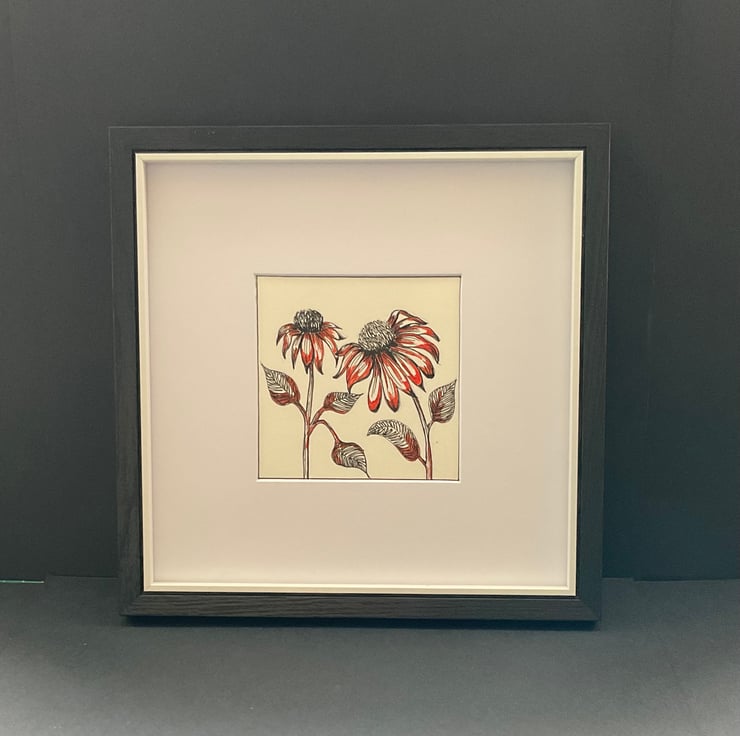 The picture is presented in a white card mount ,and the painting itself measures 10 x 10cms and the square black frame is 22.5 x 22.5cms .The frame can be hung or free standing ,whichever you choose The painting would make a lovely gift for a friend ,relative or maybe someone who enjoys gardening