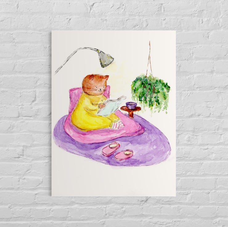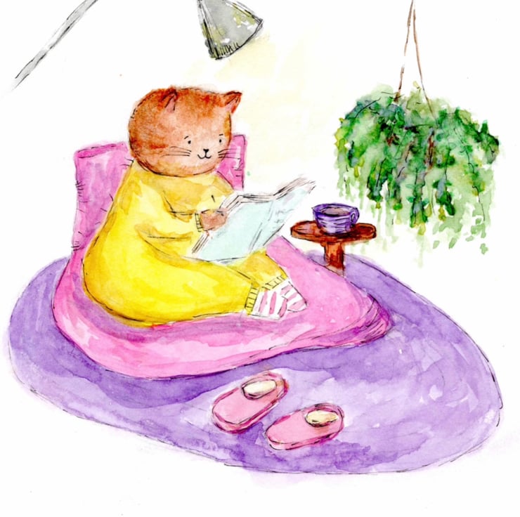 5 x 7 inch print of my original artwork titled ‘Good book and nice cup of tea’.
