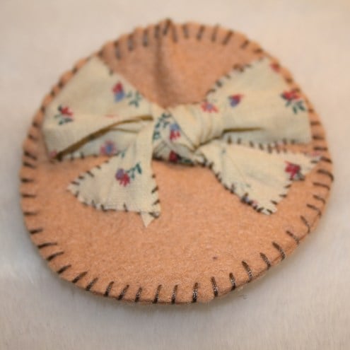 Pretty Brooch handmade with love using cream felt, hand stitched and finished with a cute bow made from a ditzy flower, cream, pink and green ribbon.
