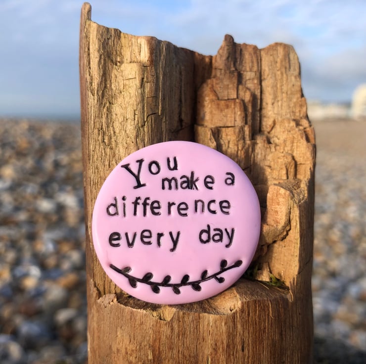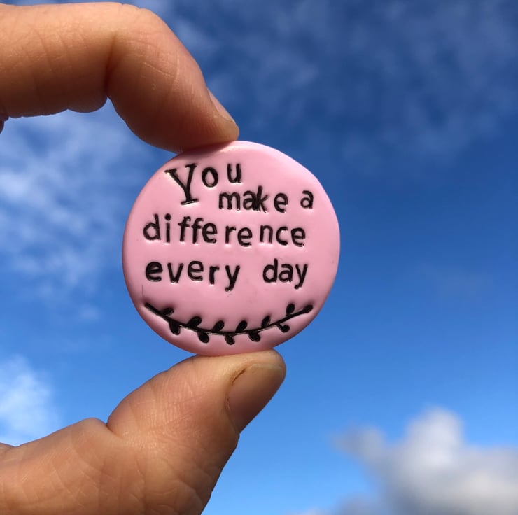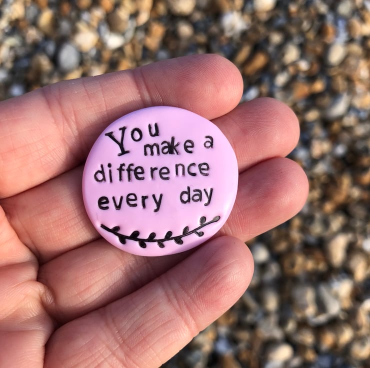As a primary school art teacher, I know that words have the power to build and encourage and I get to see the joy of word spoken light up a little face. I started making these polymer pebbles as flower designs on cards, but was quickly asked to make these as pebbles that could be held and treasured. Words were then added to produce the designs you see before you.