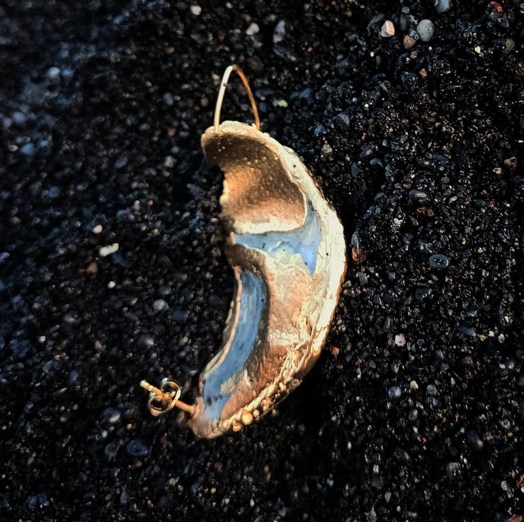 A one of a kind ear cuff, Sereth is rebellious and luxurious at the same time. Handcrafted around a beautiful genuine marine rock from the British seaside, the abstract single earring is a work of wearable art. With blue and gold flashes of colour enhancing your whole face and unusual organic textures captivating the viewer, you will stand out on any occasion. This piece would make the perfect gift for a rebel woman or a bold nature lover.