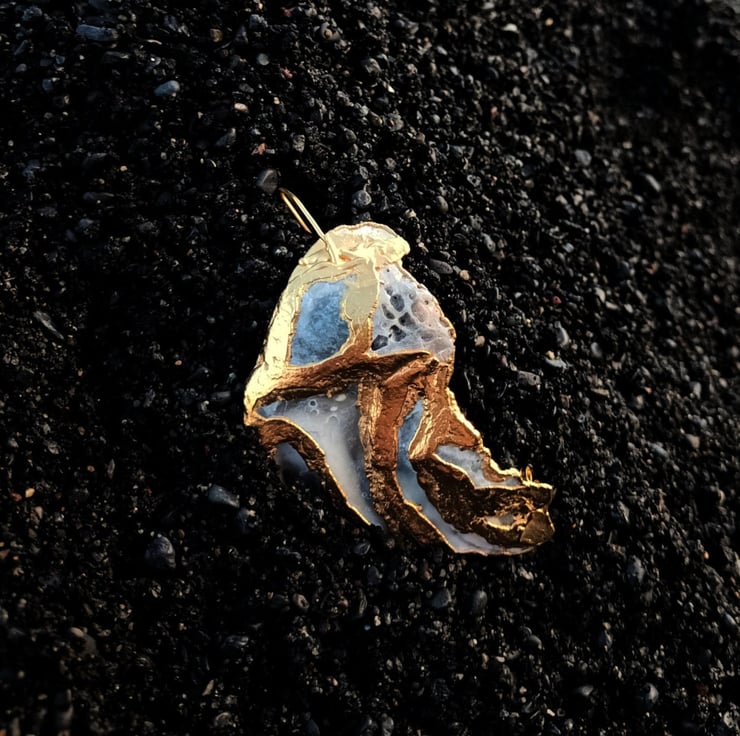 Born from a small collection of marine souvenirs from the British coast, Liquidore illustrates the unique beauty that humankind and Mother Nature create together. Beyond the conflict and destruction, there is harmony and striking creation. Complementing each other, human craftsmanship enhancing nature's organic beauty, they take aesthetics to an entirely new level. And with each shell and rock completely one of a kind, all encased in pure silver and gold, there are no boundaries to awe.