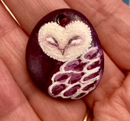 The pendant is painted in artists acrylic paints and varnished to protect the artwork.