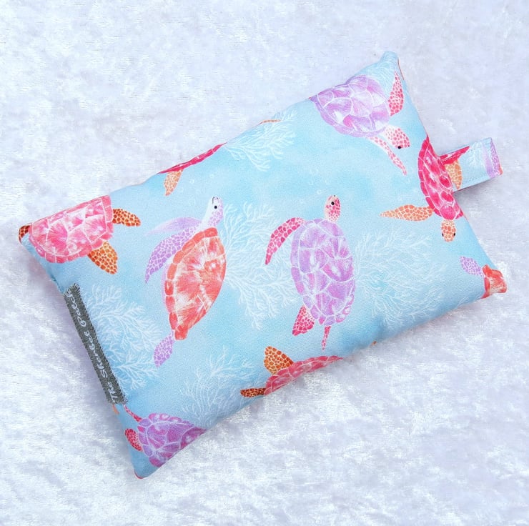 This wrist rest is made from a Dashwood quilting cotton, with a turtles design.