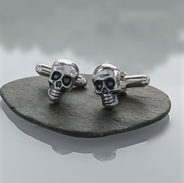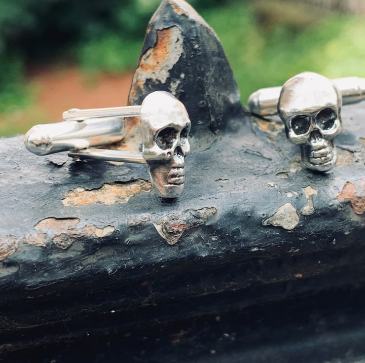 Recycled Sterling Silver Skull Cuff Links