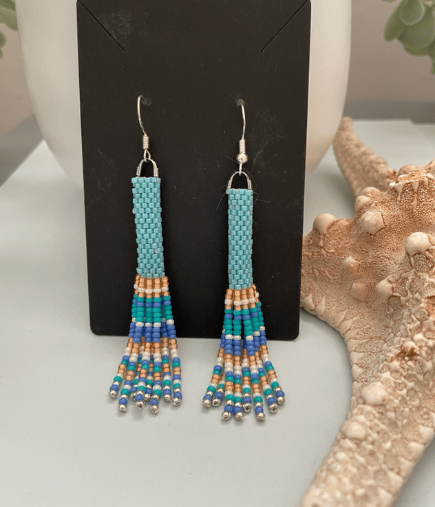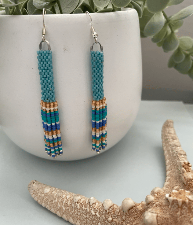 These pretty handwoven earrings are made using the finest Czech glass seed beads in a lovely selection of Summery colours to match with your favorite outfit or to gift.