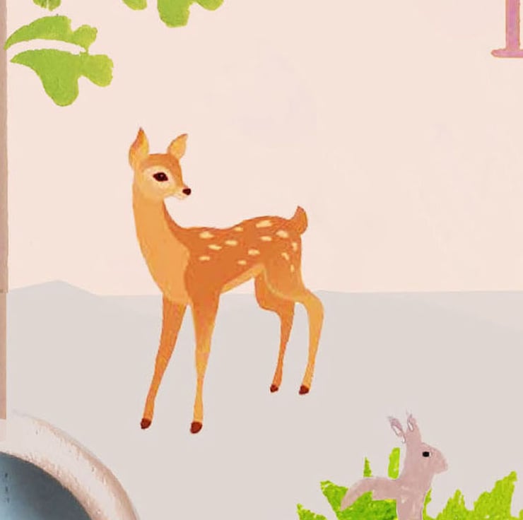 This personalised plaque/door hanger is a great addition to a child’s room. It is decorated in a charming woodland theme, and depicts a red fox and a deer.
