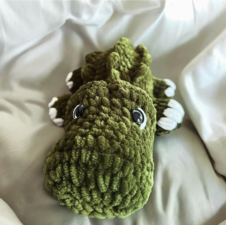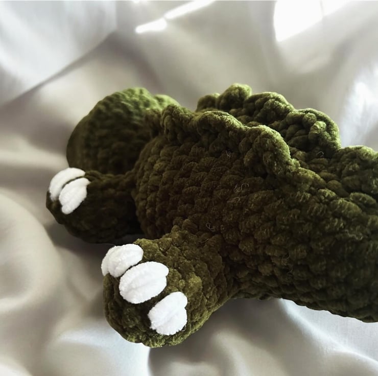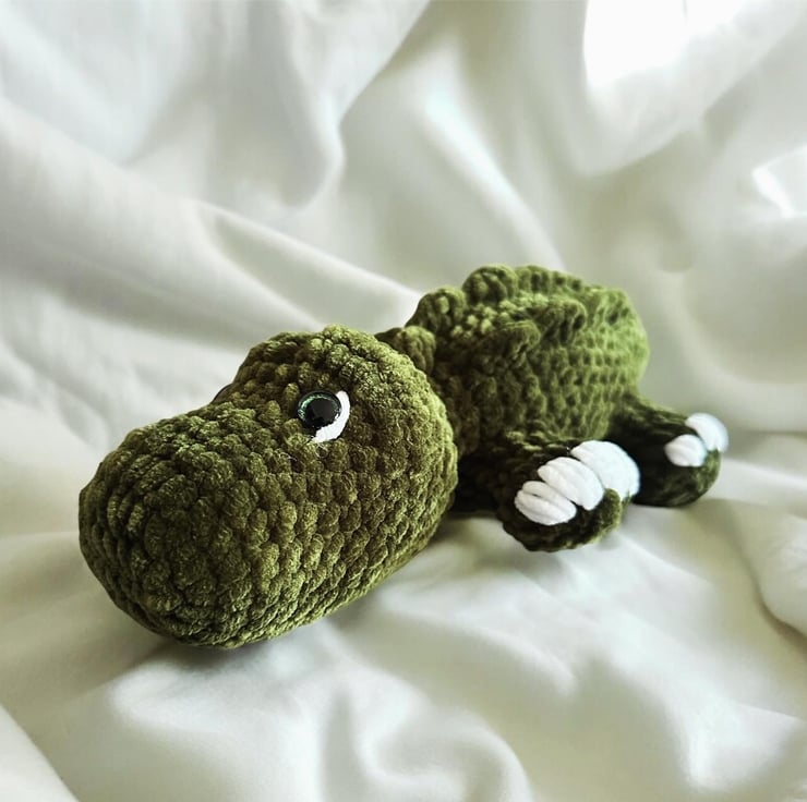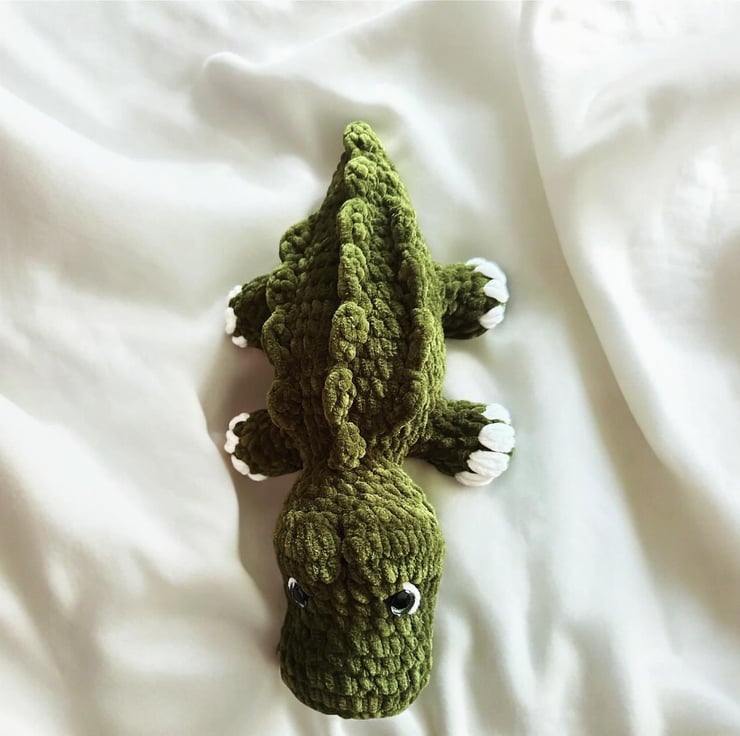 Alligator crocheted stuffed plush soft toy for kids and babies.