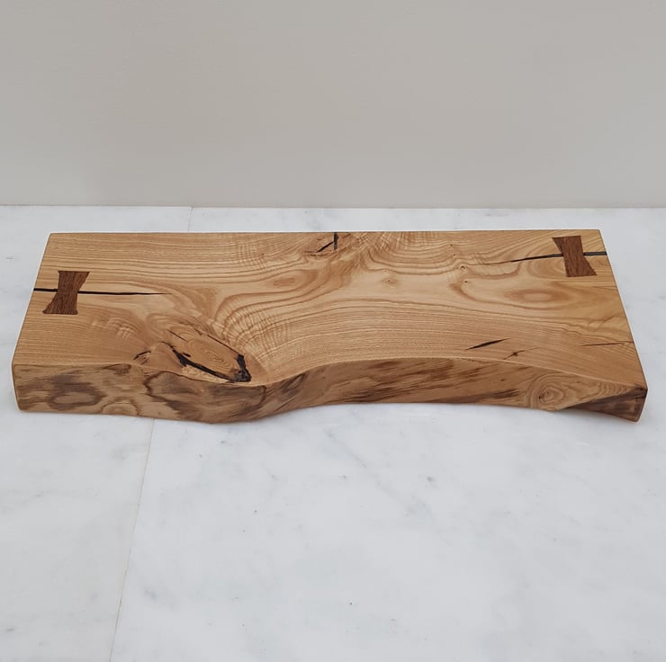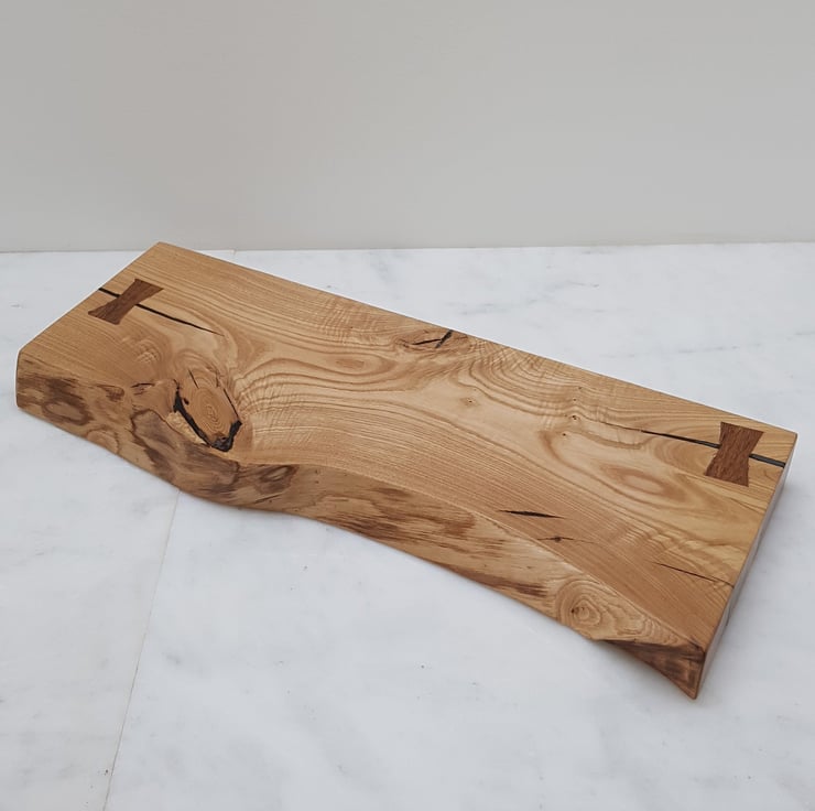 Experience the exquisite beauty of our live edge ash chopping board, handcrafted in our workshop using timber from our own woodland on the Isle of Wight! Savor the unique character and quality of this one-of-a-kind piece.