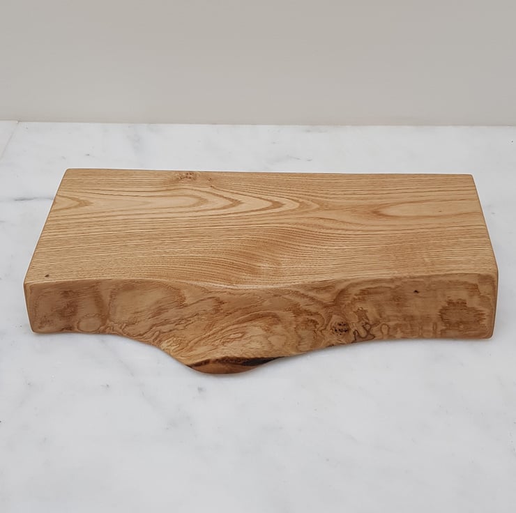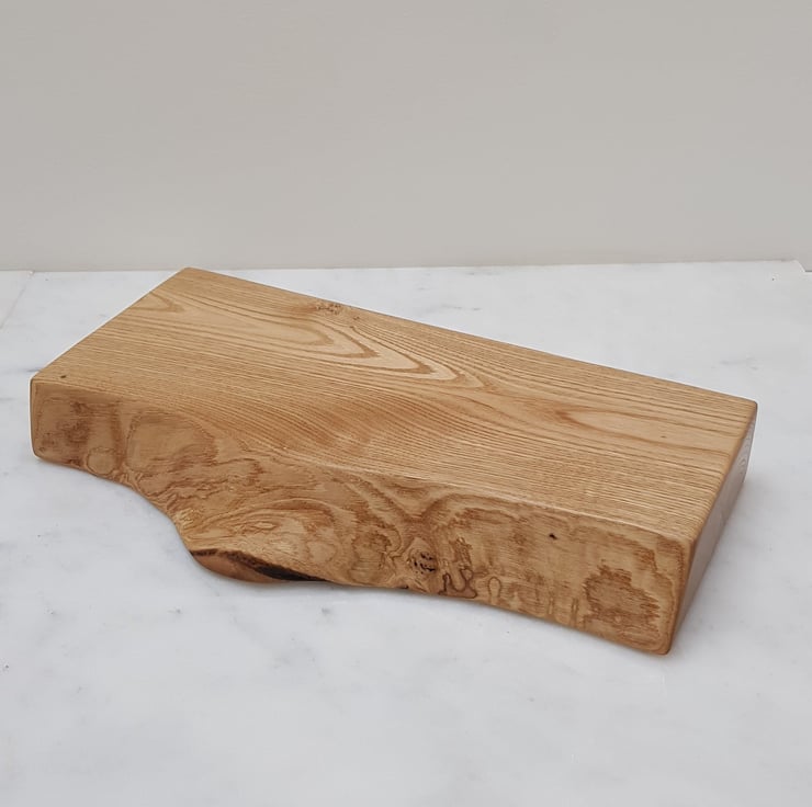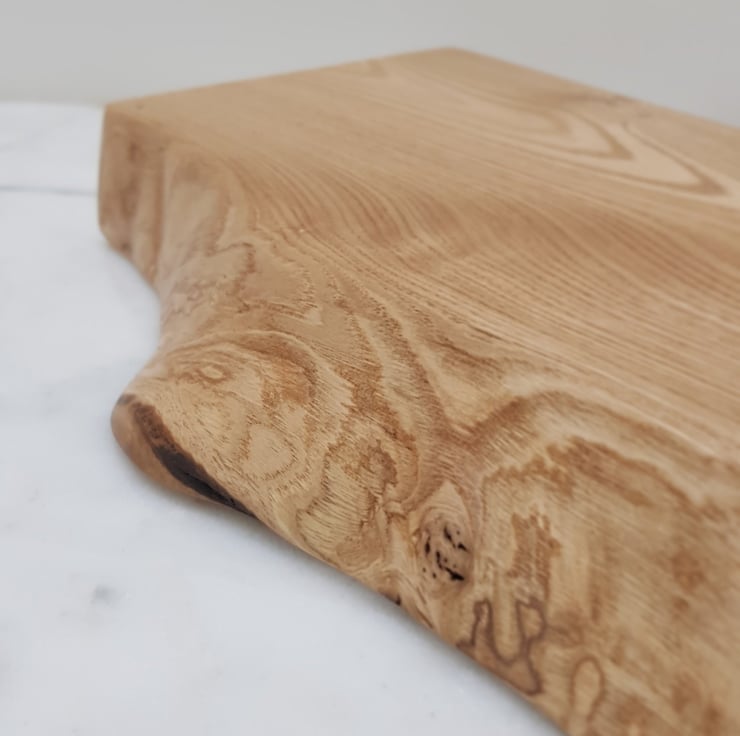 Experience the exquisite beauty of our live edge ash chopping board, handcrafted in our workshop using timber from our own woodland on the Isle of Wight! Savor the unique character and quality of this one-of-a-kind piece.
