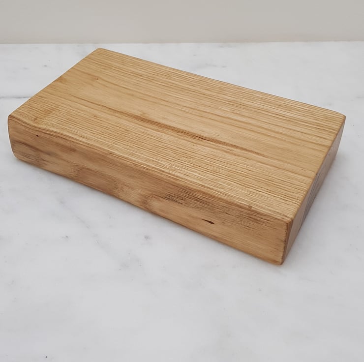 Experience the exquisite beauty of our live edge ash chopping board, handcrafted in our workshop using timber from our own woodland on the Isle of Wight! Savor the unique character and quality of this one-of-a-kind piece.