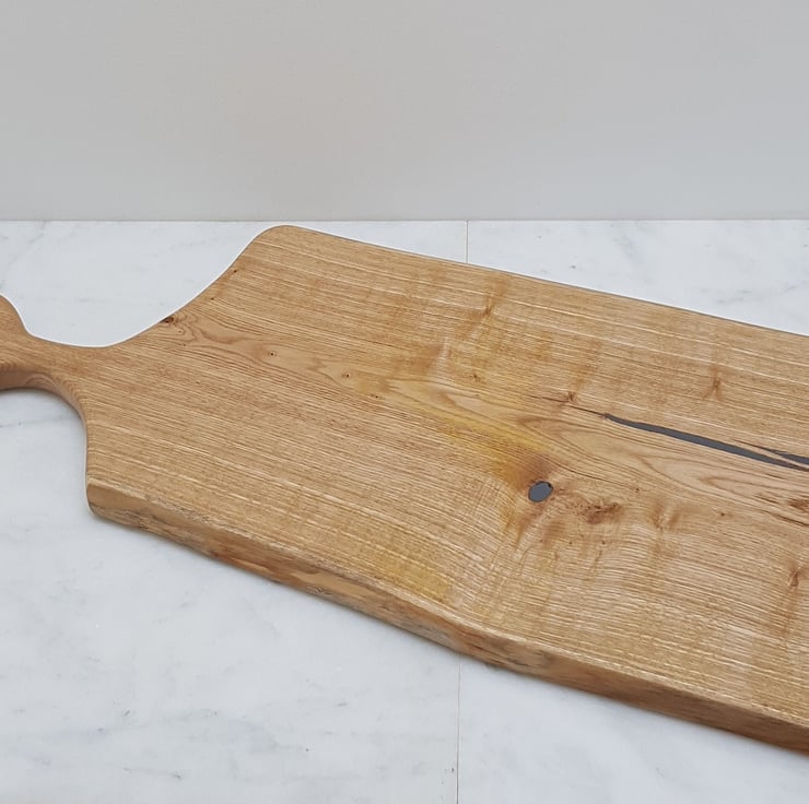This handmade No161 Live Edge Ash Charcuterie Board is crafted from timber sourced from our very own woodlands. Each unique piece showcases the natural beauty of the wood, making it the perfect addition to any charcuterie spread. Bring a touch of nature to your next gathering with this beautifully crafted board.