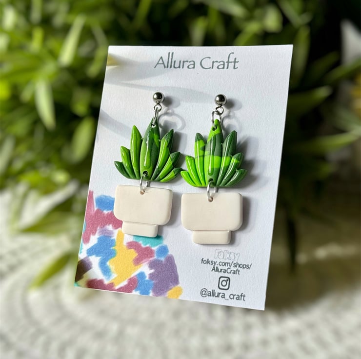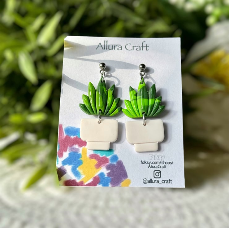 Beautiful remnant two tone green polymer clay cut in a cacti stem shape