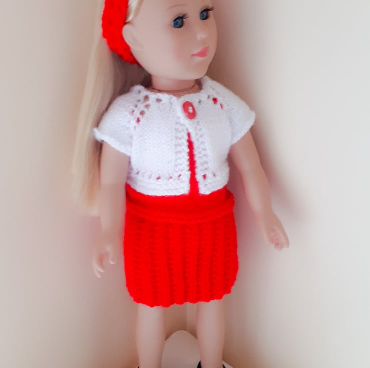 This hand knit PATTERN is for a headband for a Doll. To fit doll Height 46 cm or 18 inches. The headband is knitted in double knitting yarn using 3.25 mm knitting needles.