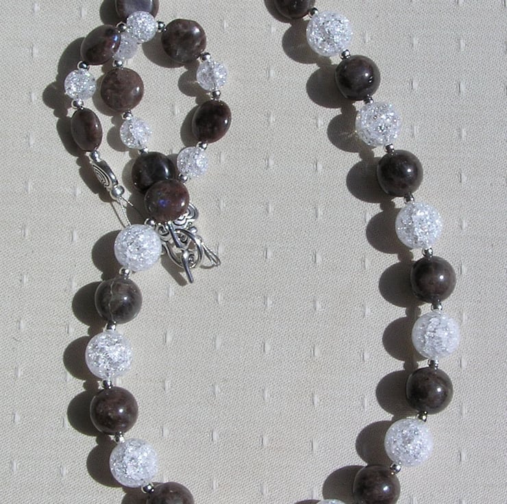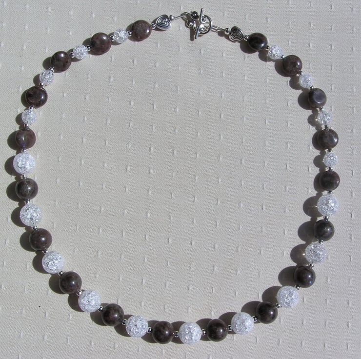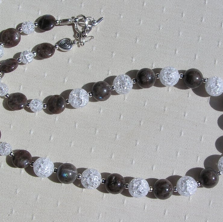This Stunning Sumptuous Necklace is made from alternating Brown Labradorite Round & Coin shaped beads and Crackled Clear Quartz Round beads each separated by a tiny Silver spacer beads - a Gorgeous dramatic combination that will look stunning either worn casually or with something more Elegant for a Special Evening out