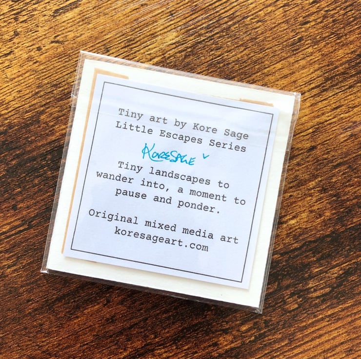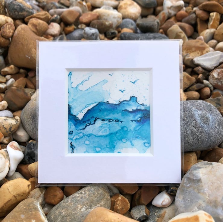 The tiny art pieces are unique, original and hand painted on my art table in Brighton with sound of the gulls overhead. This piece is part of the Little Escapes collection of small abstract landscapes, painted so you can bring that feeling of being at the wild beach to your space.