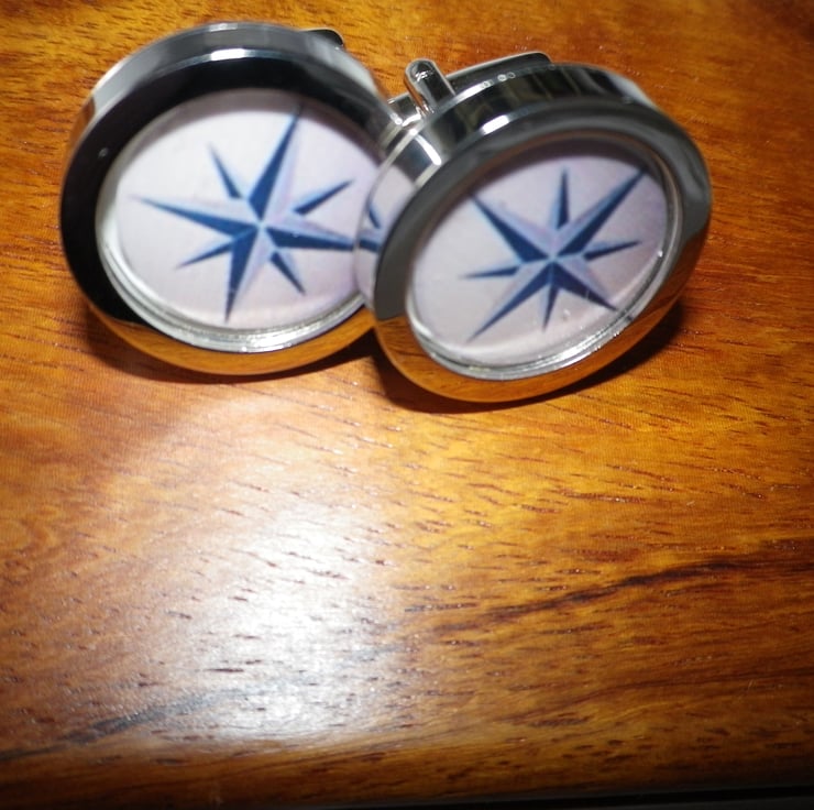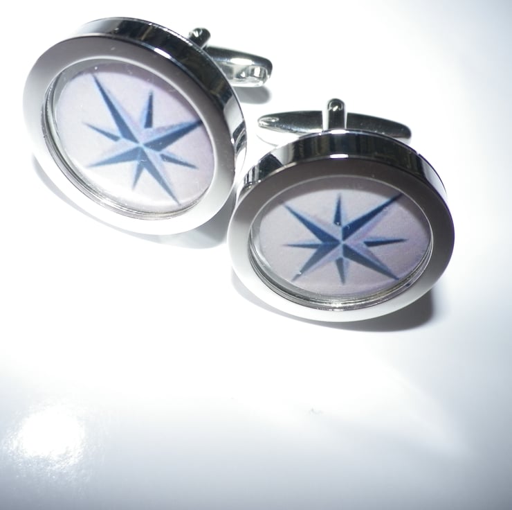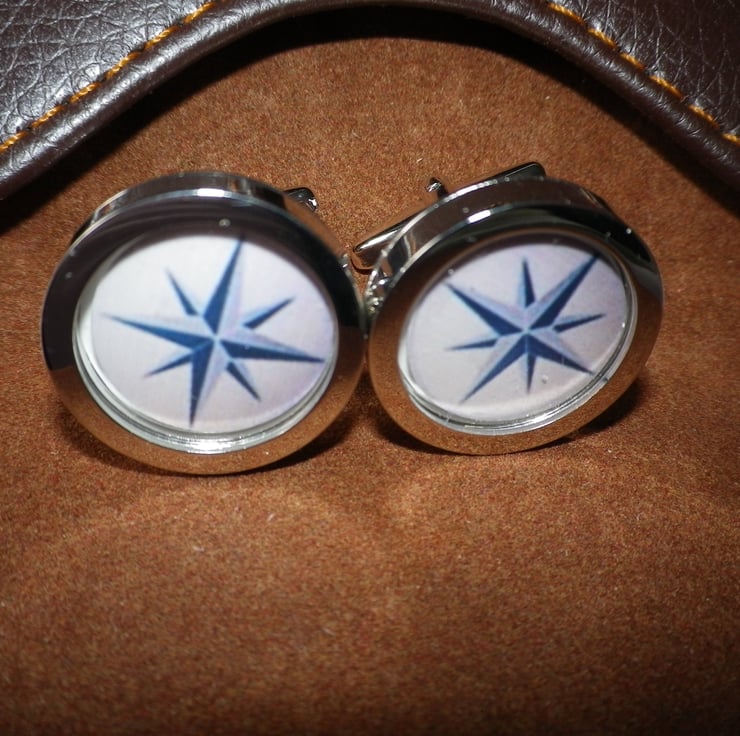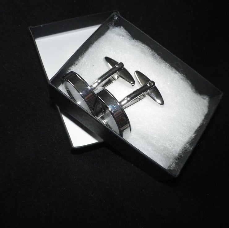 .........................This listing is part of a programme of cufflinks made in my design studio in southern England..... images include graphic art, movies & music, animals & birds, sport,& romance, plus a wide variety of other themes, all chosen for their vibrancy and visual impact......The cufflinks are crafted from rhodium plated alloy, are highly polished with a deep setting and cigar shaped shank for ease of use .