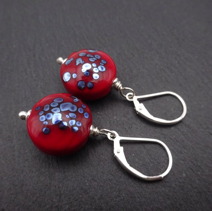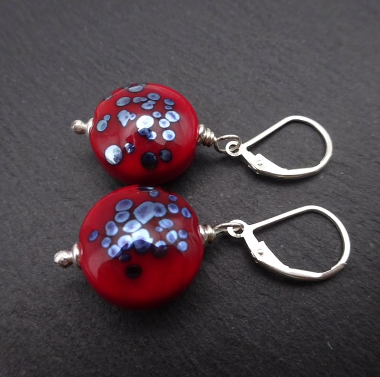 The lampwork beads have been handmade by me using red and silver glass.