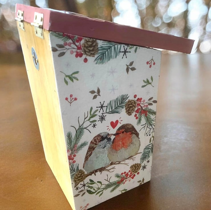 Due to the nature of decoupage, some imperfections, such as the surface not be completely smooth, may be noted. Although every effort is made to minimise this, it is part of the crafting process. Personally, I think it adds to its uniqueness