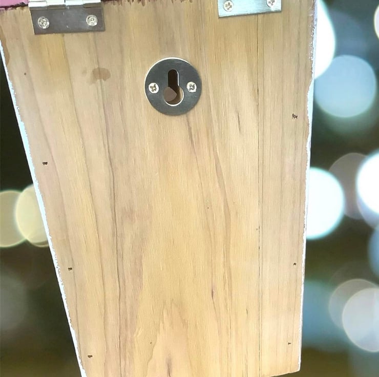 The sloping roof allows to keep the birdhouse dry. The hinged roof will make cleaning the birdhouse easier once nesting is over. It has a hanging hook so ready to use and a 30mm hole, perfect for wild and garden birds, To avoid predators the perch has been let off.