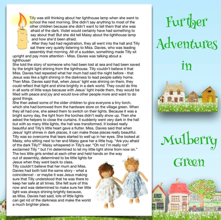 There are other children in Maisy’s class at school - Violet, Billy with his pet rabbit, Amber, Tilly, Rosie and her kittens, Amelia, Ruby, Marigold, Bobby with Max the dog, and the twins Oliver and Olivia, who have a puppy called Oscar. The dolls are all 26cm tall and baby Daisy is 16cm. Maisy and Mo love nothing more than having adventures with their friends. You can read about their adventures on my Facebook and Instagram pages - Maisy Muffin Rag Dolls and on my Mulberry Green Pinterest boards.