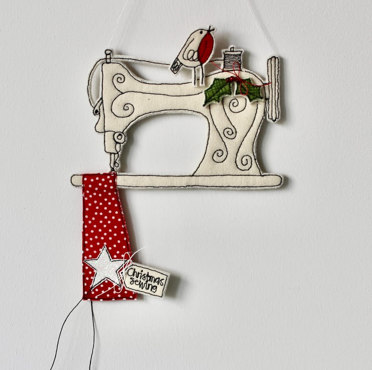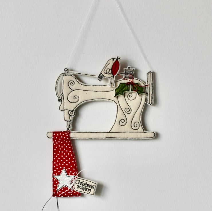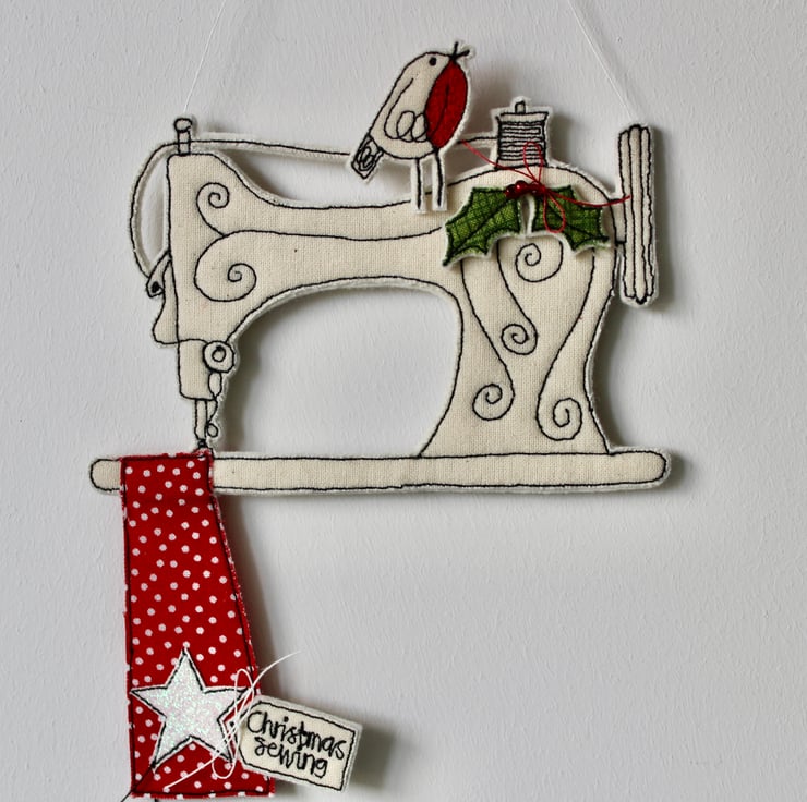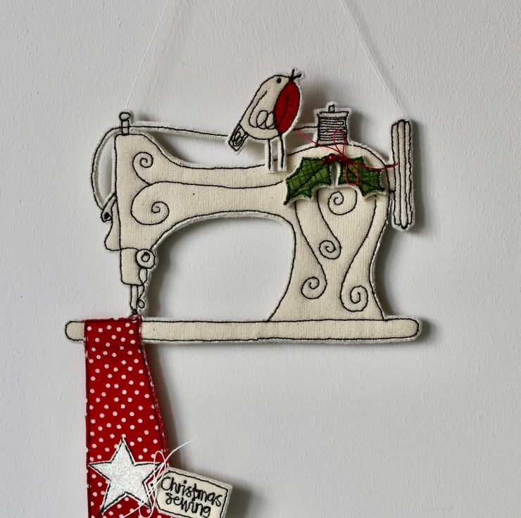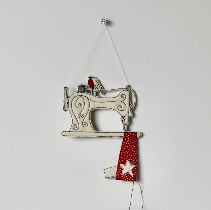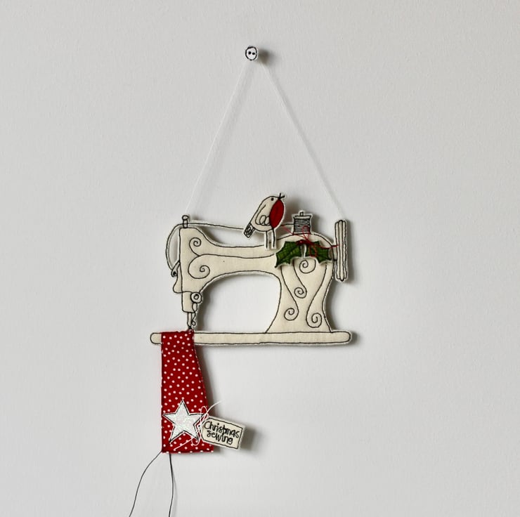 Suspend 'Christmas sewing' sewing machine using the linen thread loop and add a sewing dimension to your home at Christmas or it makes a unique present for that special person who loves to sew.