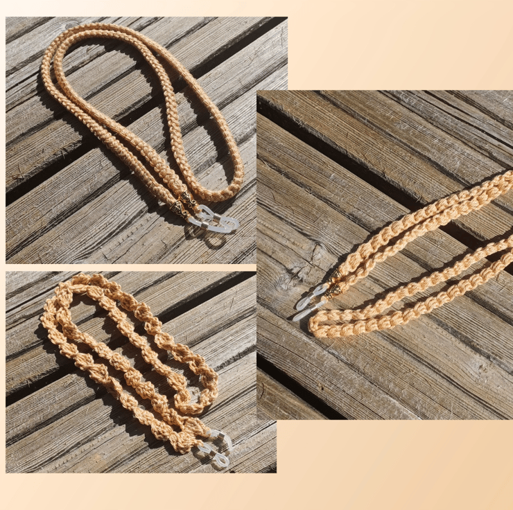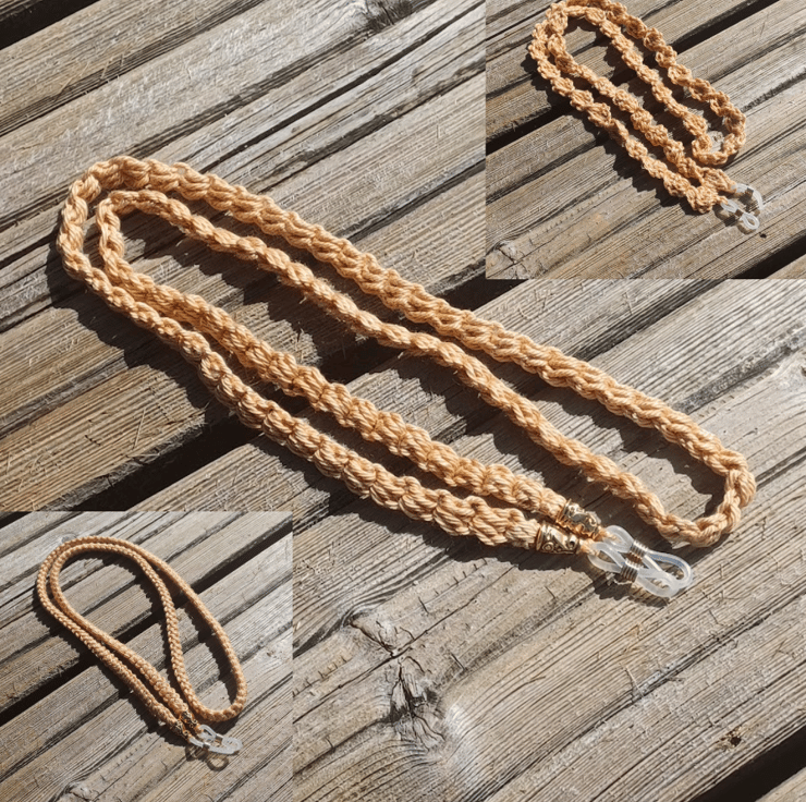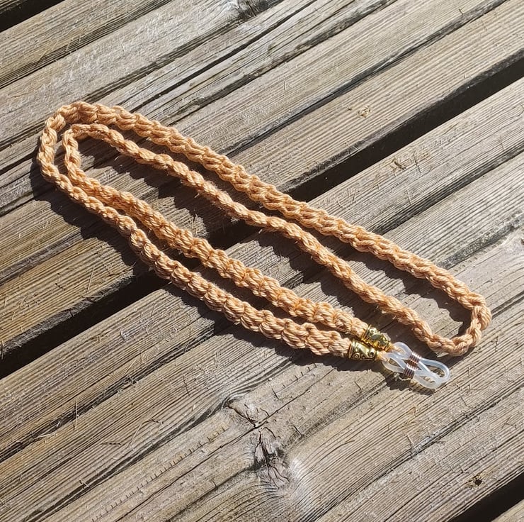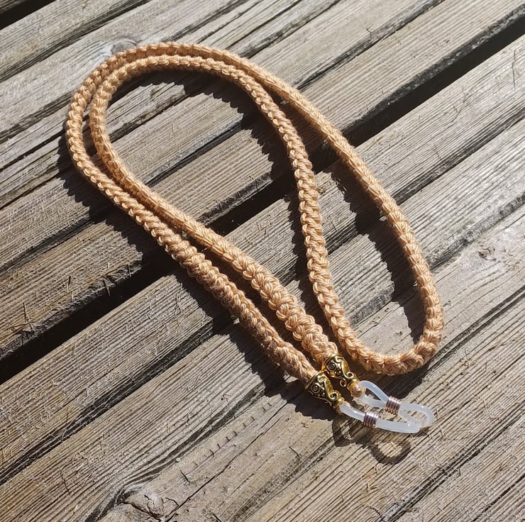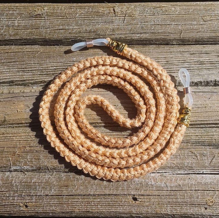 Made from solid colour high quality cotton yarn with nice gold colour metal end beads and white (clear) silicon loops