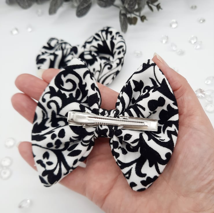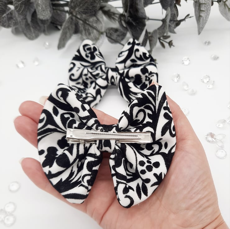 Black and white clip on bows.