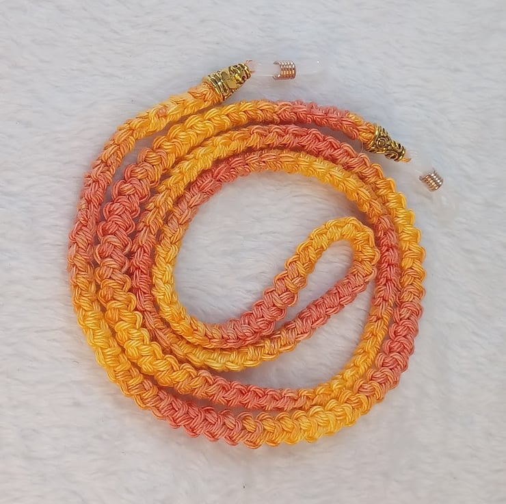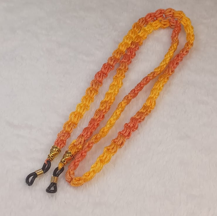 Blazing colours cotton cord for glasses with nice gold colour end bead and white (clear) or black loop