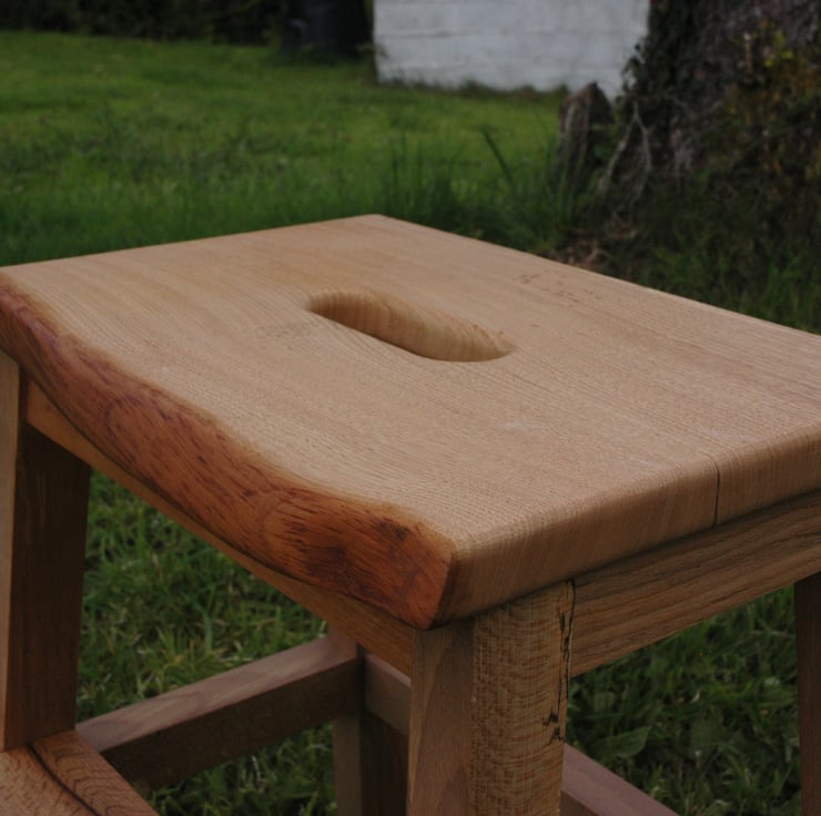 For this one the top and step are made from oak The top came from a tree that was felled to make way for a new kitchen extension and the other was hanging over a road and at imminent risk of collapse. The waney edges of both trees have been used to showcase the timber's natural shape making each stool truly unique.
