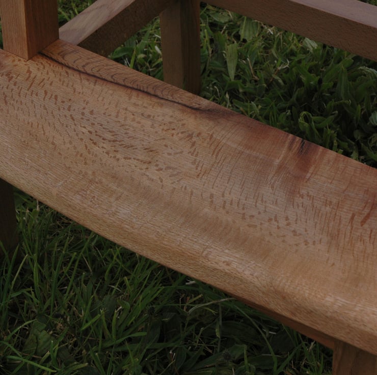 We use solid Beech staves for the mortice and tenon jointed frame, often with gloriously characterful spalting or flame features.