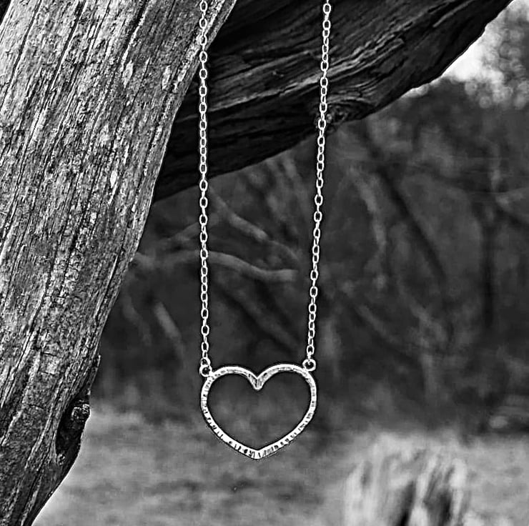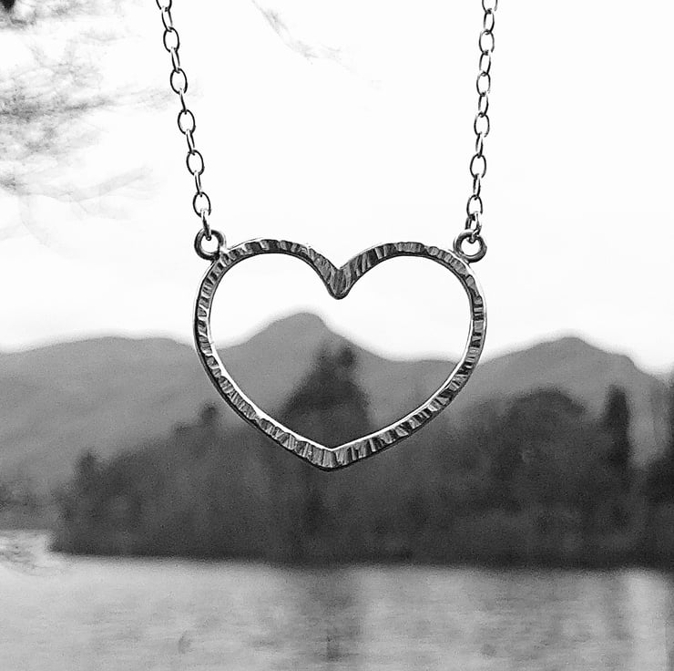 This sterling silver hammered heart necklace is a real eye catcher. I make each one individually and the natural bark effect texture is added by using a riveting hammer, making every one unique and when polished these really do sparkle as they catch the light.