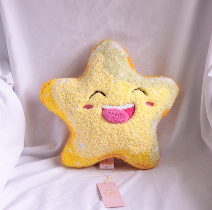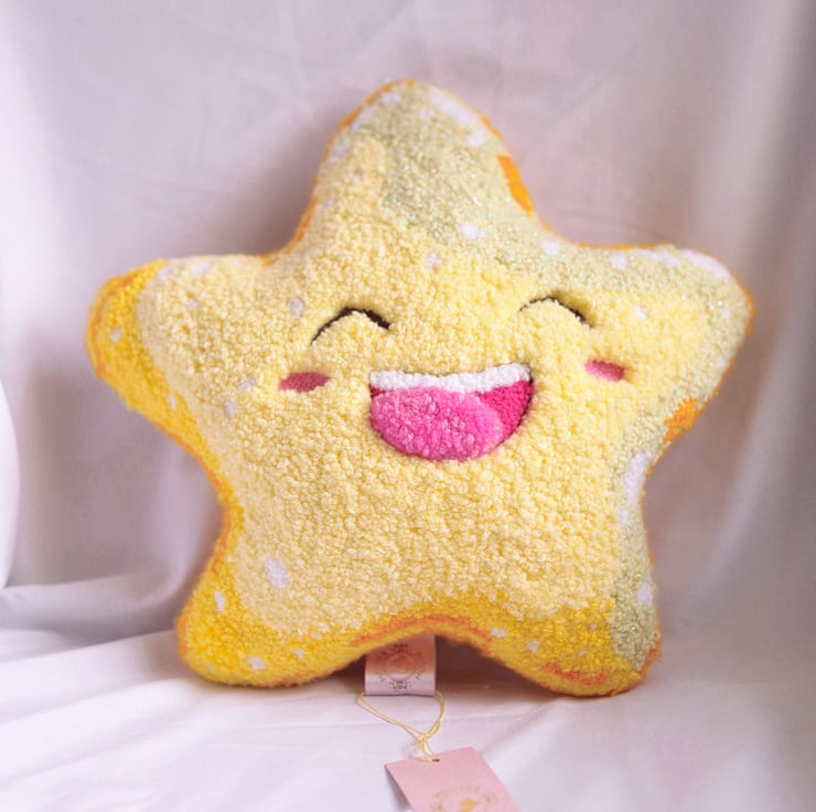 Bring happiness and a touch of whimsy to your home with this one-of-a-kind smiley star cushion. It makes a perfect gift for loved ones or a playful addition to your own decor!