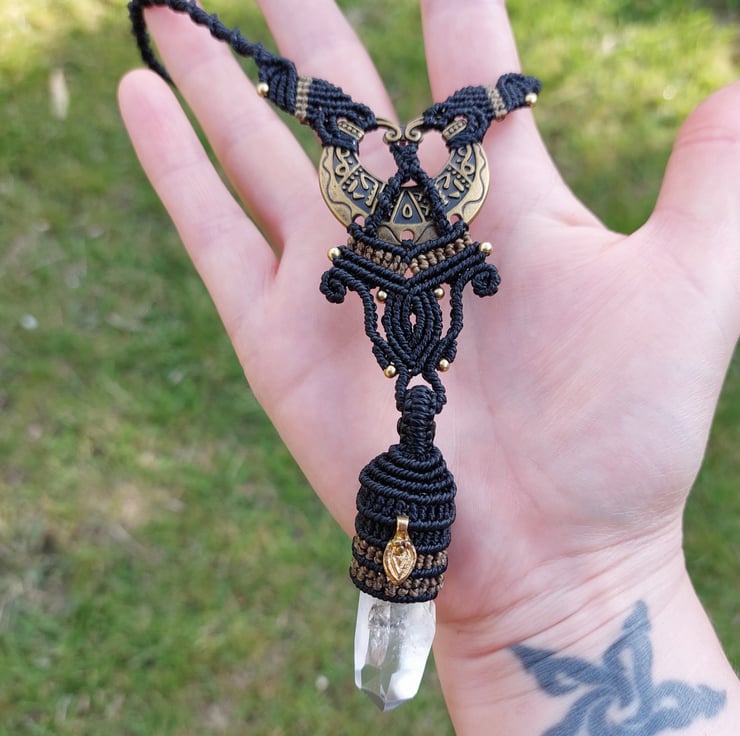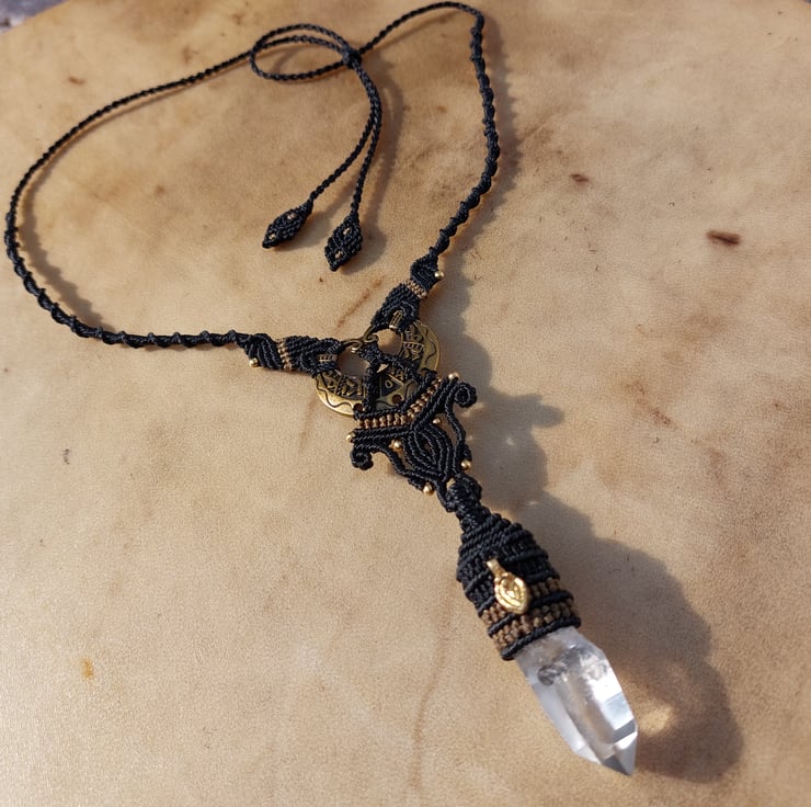Handmade using a good quality waxed cord and 100% tibetan brass beads and a brass charm. Adjustable cord ( 38cm drop approximately) with a slider with detailed cord ends.
