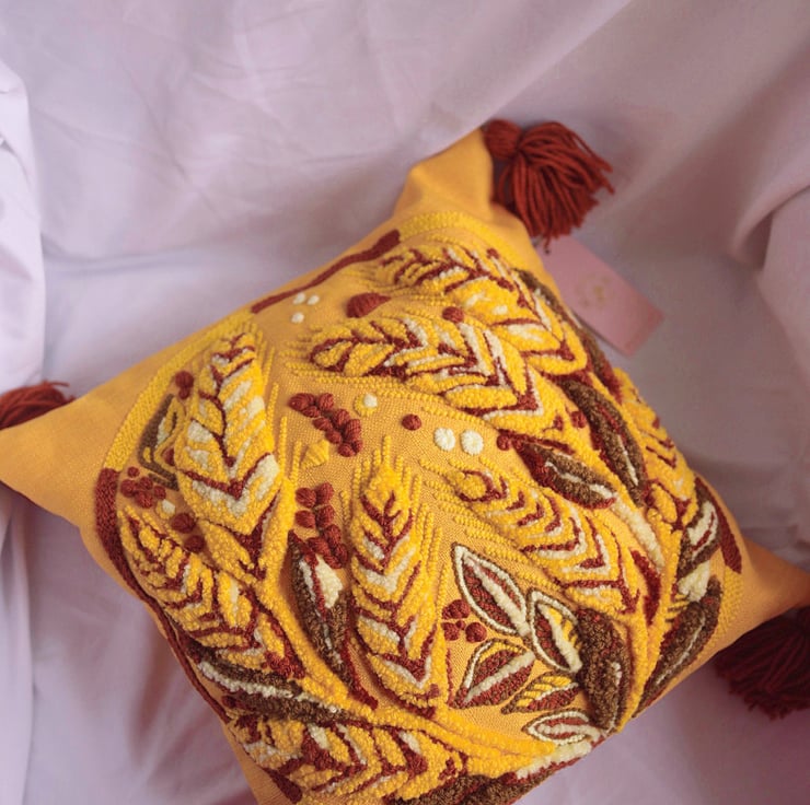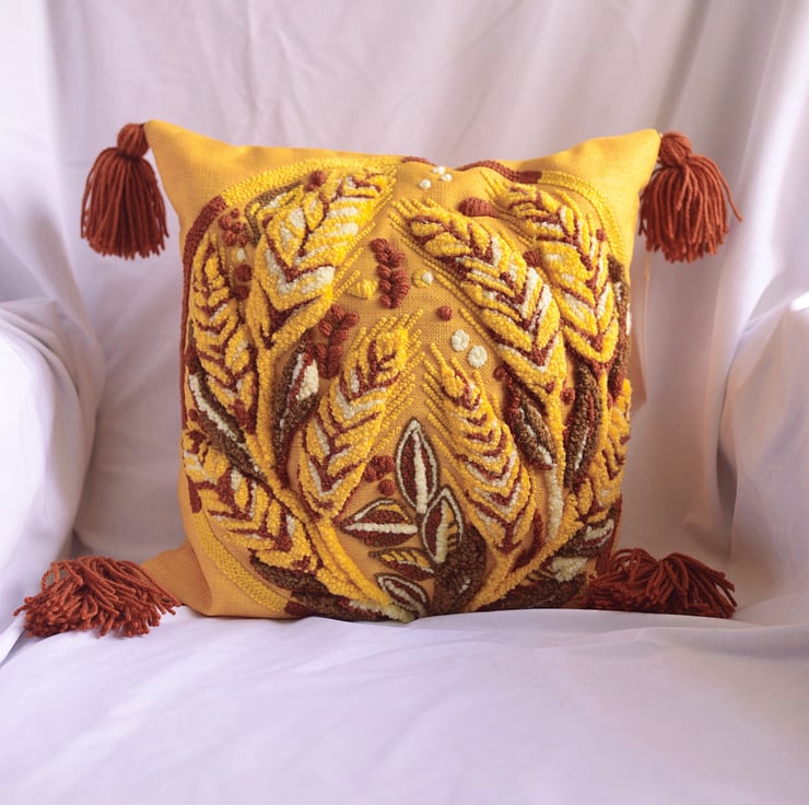 Bring a touch of rustic charm to your home with this handmade punch needle cushion featuring a beautiful wheat design. Perfect for adding a cozy, natural vibe to any room.