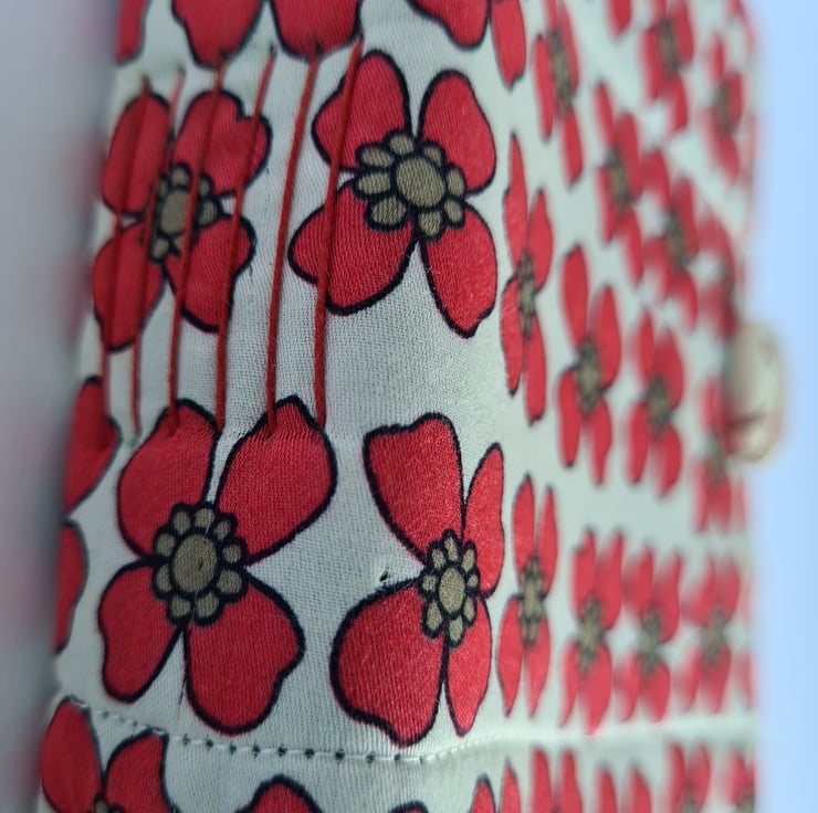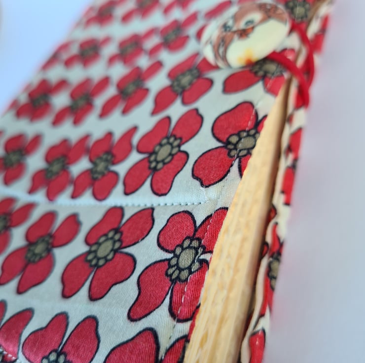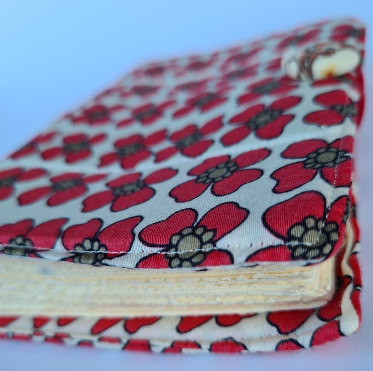 The cutest flower fabric has been used for the make of this journal. With the cutest of vintage style handmade buttons.