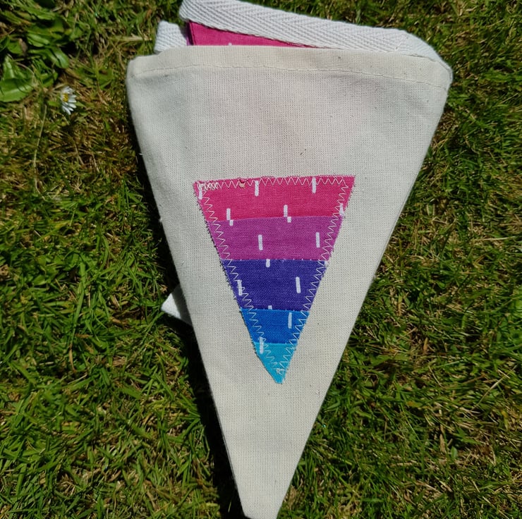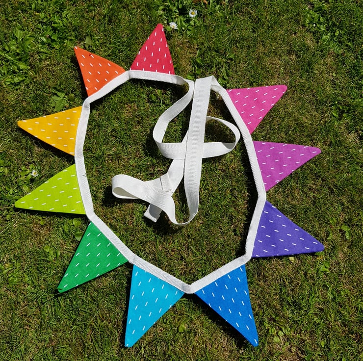These lovely cotton fabrics make a sweet little bunting to brighten up your garden, conservatory or indoors. Ideal for festival too or would look great on a tent!