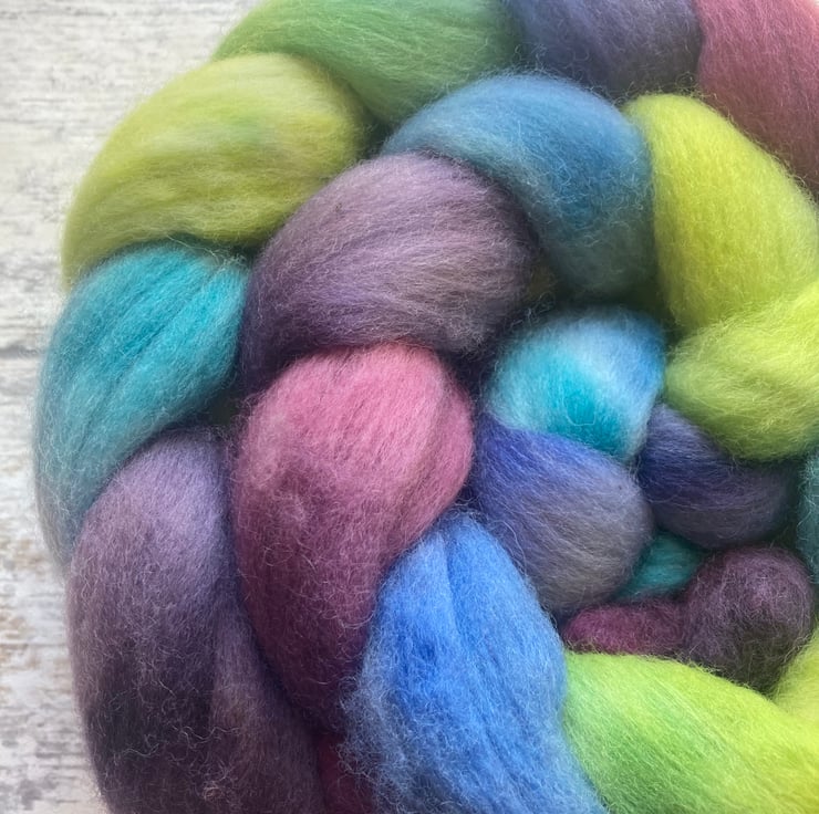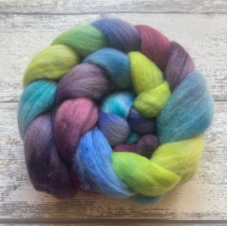 A fine soft, fluffy, super white Chilean Wool, that dyes just beautifully.