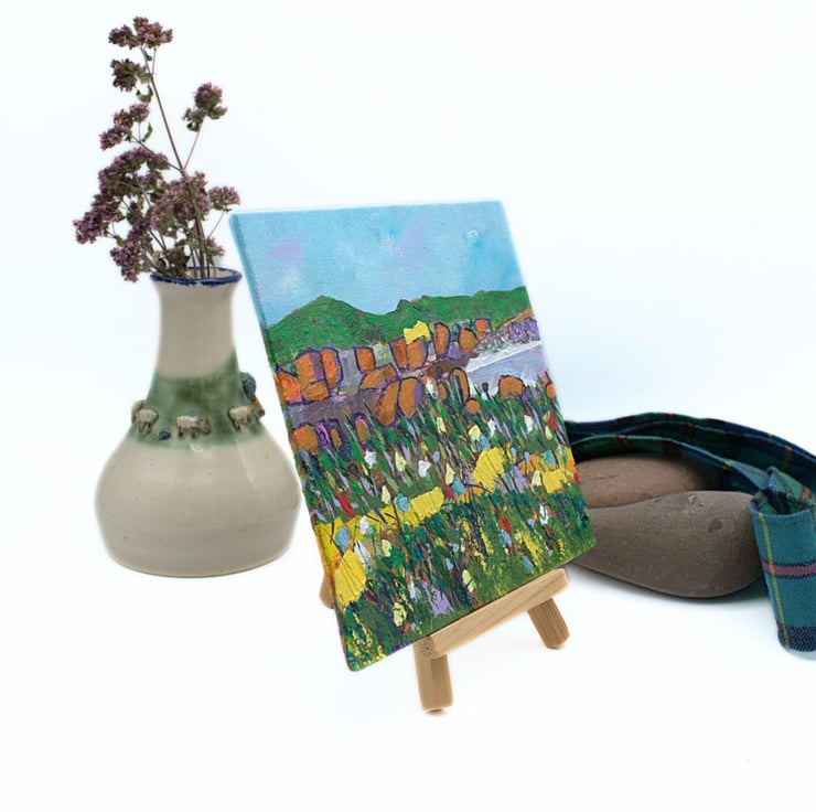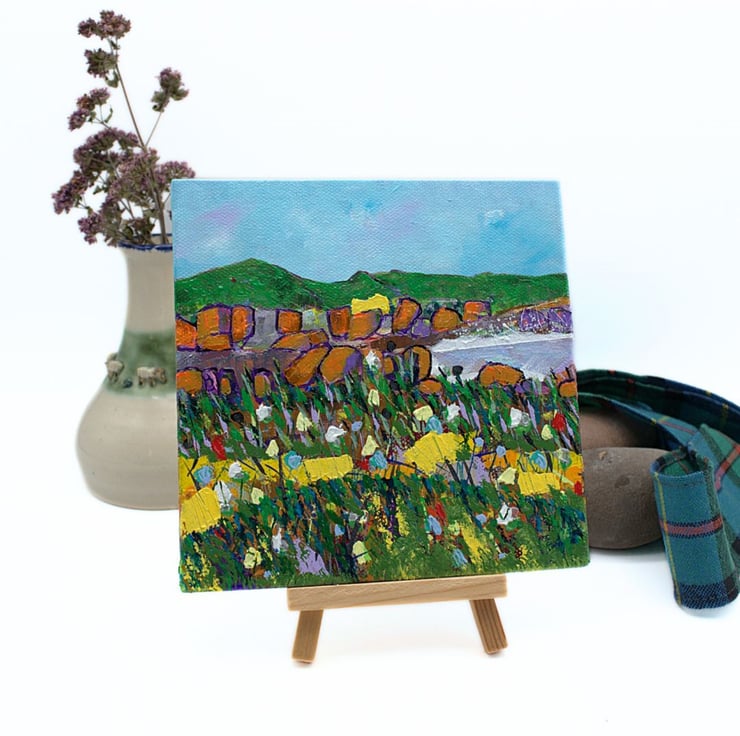 This original landscape with wildflower painting will be posted by first class Royal Mail. The painting will be covered with glassine paper before it is carefully encased in bubble wrap (or equivalent). It will then be secured in a heavy duty mailing box.