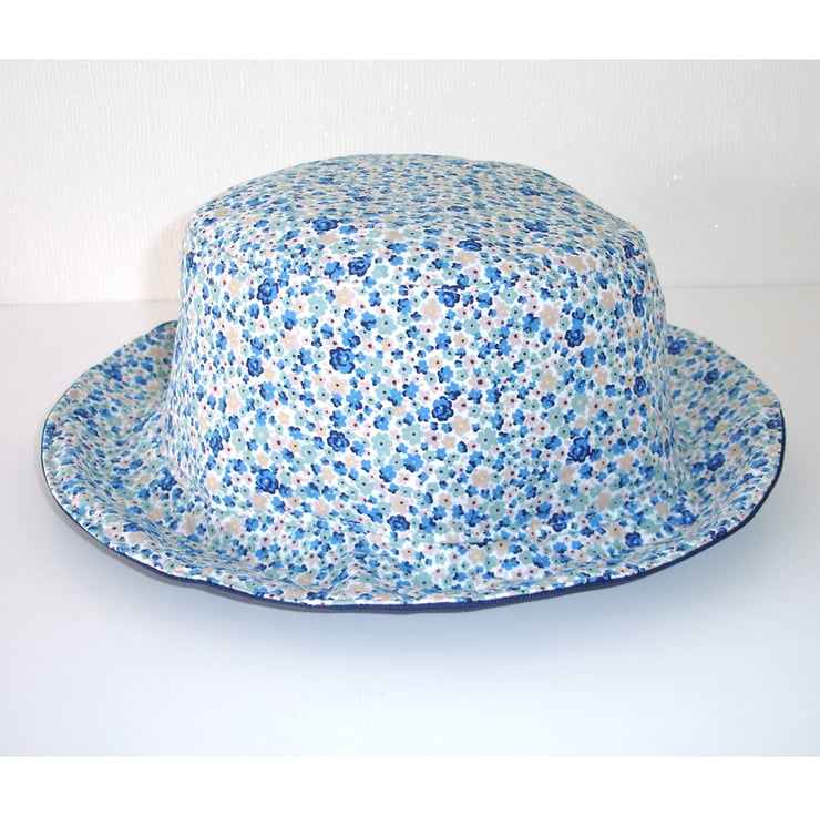 Blue Summer Hat Bucket Hat Ditsy Floral Navy Blue Duck Egg Reversible Sun Hat