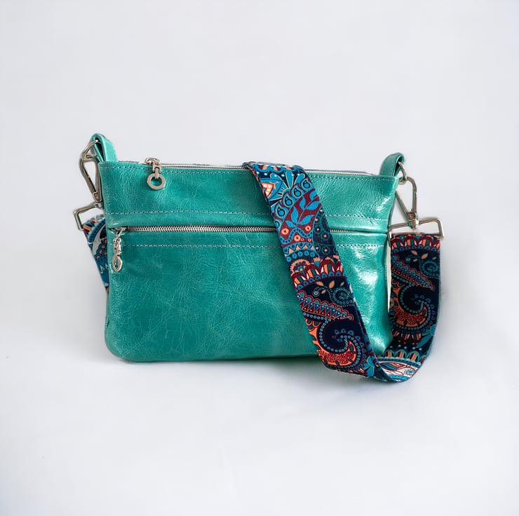 - Rescued genuine Italian leather in a stunning turquoise / teal